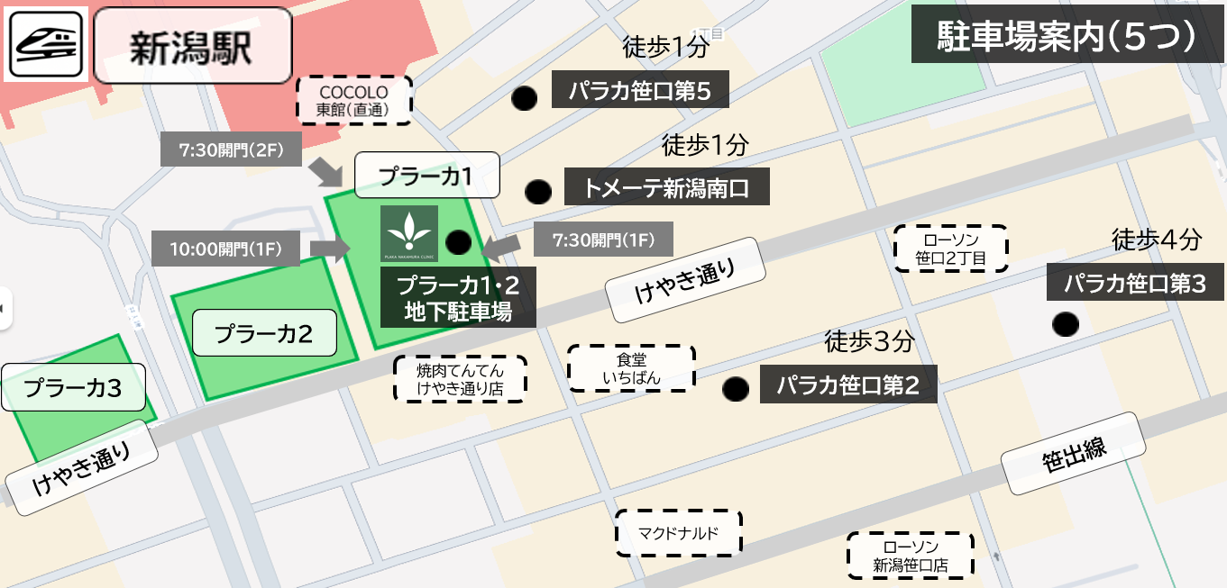 処方箋がある場合: 隣の薬局をご利用で、薬局にて駐車券が出ます。